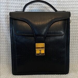 Sophisticated Bally briefcase in black leather. Features gold hardware and secure lock. Ideal for professional use.