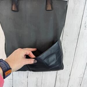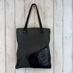 Bally Black Leather and Canvas Basca Shoulder Tote Bag Signature Front B Pocket