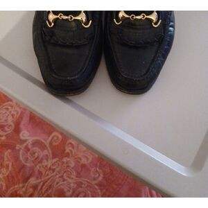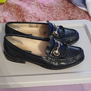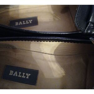 Experience timeless elegance with these Bally black leather loafers, featuring a sleek flat design and a striking gold chain ornament on the vamp. Crafted from premium leather, these shoes offer a subtle textured finish for a sophisticated look. The light-colored sole and comfortable interior lining ensure all-day comfort and style.