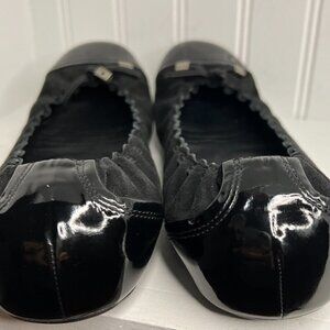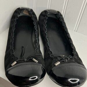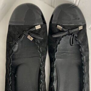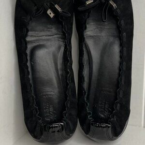 Bally - Black Suede Flats w/ Patent Leather Trim Sz 10