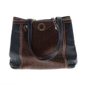 This stylish bag features a sophisticated black and brown leather design, perfect for any occasion. Its elegant look is complemented by durable materials and a spacious interior, making it both fashionable and functional.