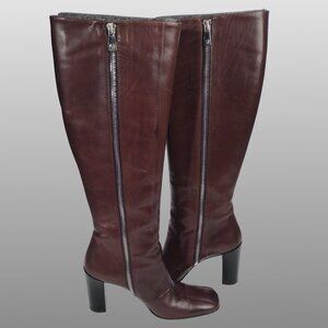 Bally CHADRA Italy Knee High Leather Boots Deep Plum 37 EU 6.5 US