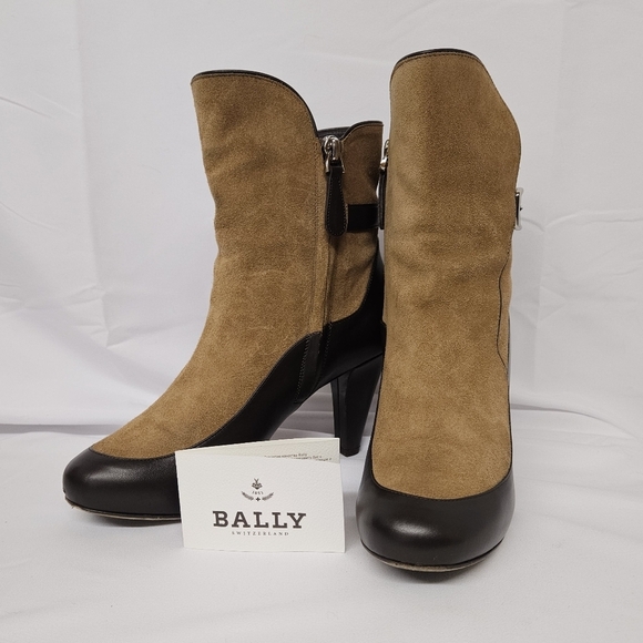 Bally Chanya Suede And Leather Heel Boots In Tan And Brown US Sz 6 EU Sz 36.5