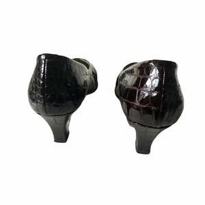 Bally Crocodile Embossed Pump Patent Brown Leather 10N