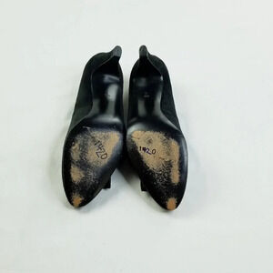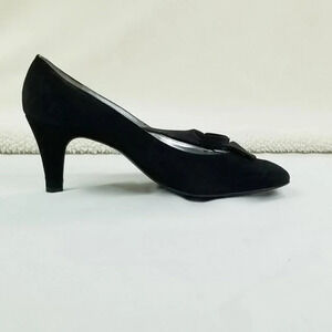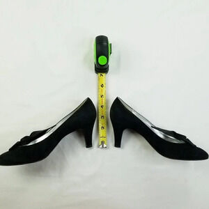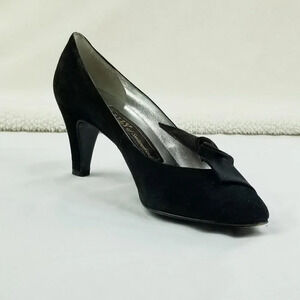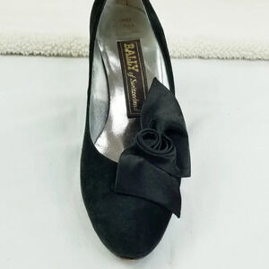 Bally Dagmar size 5.5B Women's Black Suede Satin Bow Accent Slip On Kitten Heels