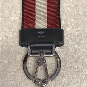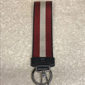 This Bally Large Logo Fabric Keychain in White and Red is in excellent preowned condition.