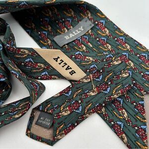 Bally MENS neck tie green golfer man figural caddy handmade in the us silk Preowned Nice condition