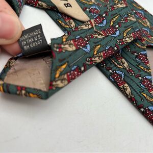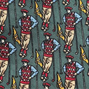 Bally MENS neck tie green golfer man figural caddy handmade in the us silk