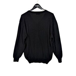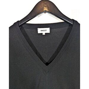 Bally Men’s Black Virgin Wool Golf Sweater Size 42 V-Neck Designer Preppy Knit