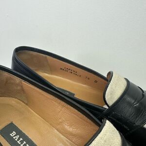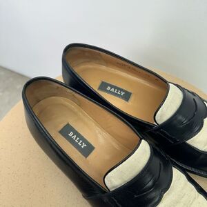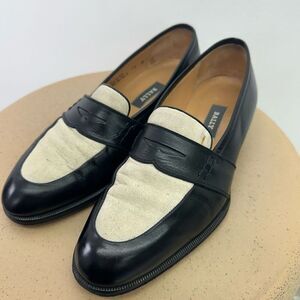 Bally Men’s Black and Cream Carena Leather Linen Canvas Slip on Almond Toe Penny Loafer