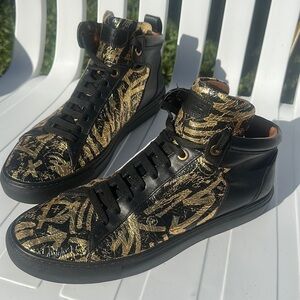 Bally Men’s Hedo Graffiti Leather High Top Sneakers Size 9.5