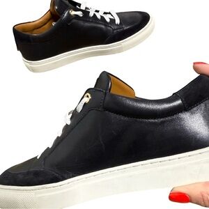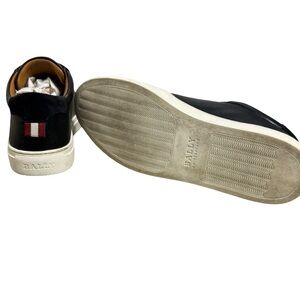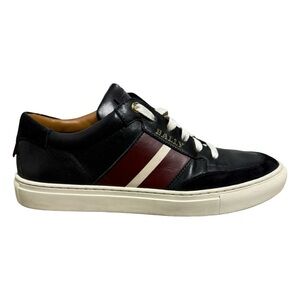 Bally Men’s Leather Suede Sneakers Black Red Stripe Size US 9 EU 39.5
