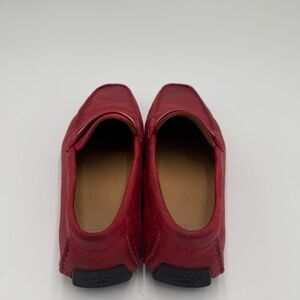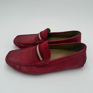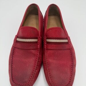 Bally Men’s Red Pebbled Leather Driving Loafers w/ Signature Stripe — Size 9