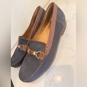 Bally Napoli Navy Brown nubuck leather loafers Made in Italy Size 11