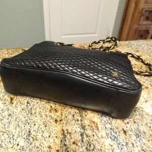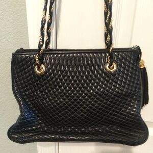 Bally Quilted Black Leather Gold Chain Strap Tassle Tote Purse Shoulder Bag Vtg