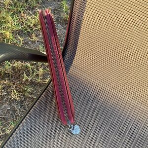 Bally Red Embossed Zip Wallet