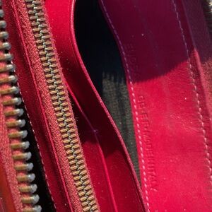 Stylish Bally red embossed wallet with a secure zip closure. Bally exquisite, zippy wallet, gorgeous all leather zip wallet card holders some noticeable wear and tear still absolutely amazing lots and lots of life left both zipper exterior and interior run smoothly