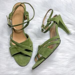 Bally Shena Suede Criss Cross Open Toe Ankle Strap Sandal Pear Green Sz 6