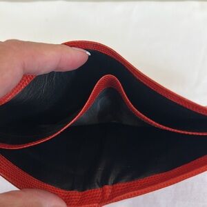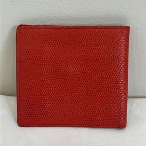Wow!! This vintage beauty is a stylish red snake embossed slim wallet featuring the iconic gold 'B' logo. The leather is so light and soft. Perfect for everyday use. Minor callouts are color transfer - darkened spots;wear on corners and color wear on “B”. Please review pics.