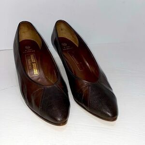 Bally Suisse Bellezza Brown Luxury Leather Snake Print Design Point Toe Pumps