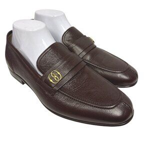 Bally Suisse Men's Loafer Logo Calf Leather Brown Slip On Block Heel Size 8 NEW