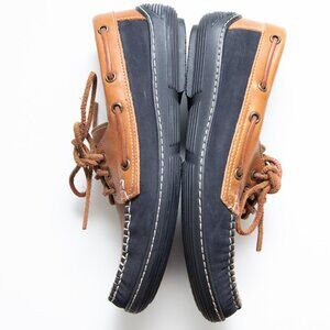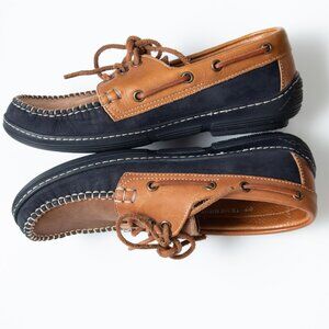 Bally Tenebrio Boat Shoes Suede Leather Deck Loafers Navy Brown Size 40 / 7