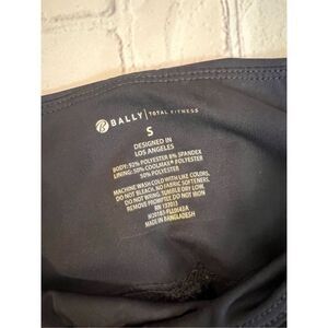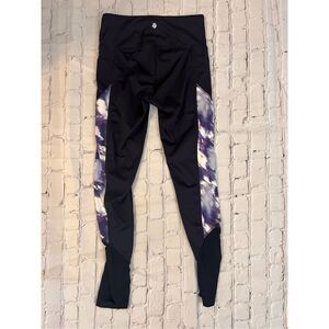 Bally Total Fitness Women's S Black Workout Leggings Purple Abstract Side Panels