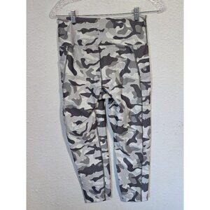 Bally Total Fitness Womens Cropped Camo Leggings Pants Gray Size Medium 2 side Pockets. In good pre-owned condition see pictures above.