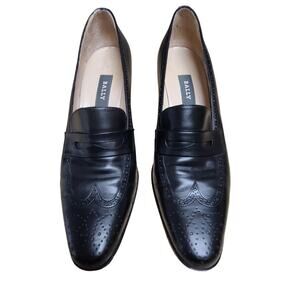 Bally Vintage Black Leather Made in Italy Pumps Shoes 3" Heels Brogue Style 10 N