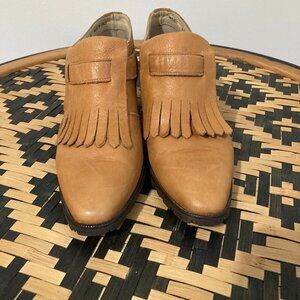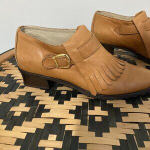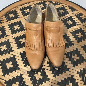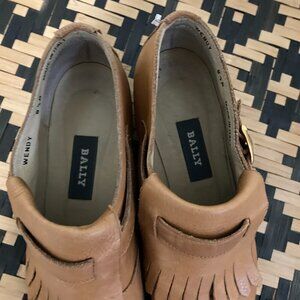 Bally Women Size 8 1/2 Designer Leather Beige Bootie Loafer Fringe Italian Made