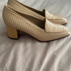 Chic Bally loafers with a playful polka dot design. Beige base with white accents. Ideal for casual elegance.