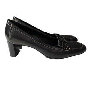 Bally Women’s Black Leather Penny Loafer Heels | Size 11 US | Classic Block Heel