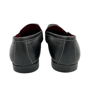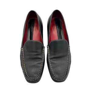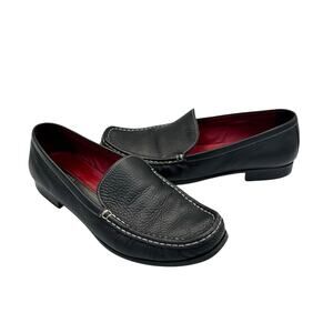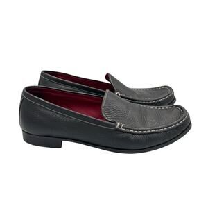 Bally Women's Black Pebbled Leather Contrast Stitching Slip On Moccasin Loafers