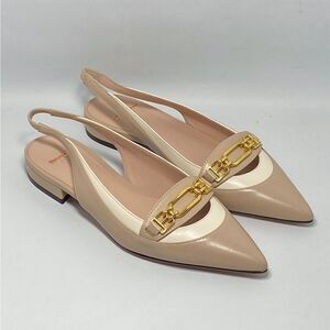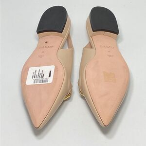 Beige leather horsebit-detail pointed ballerina shoes from BALLY featuring horsebit detail, slingback strap, pointed toe, flat sole and branded insole.