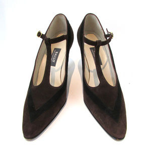 Beautiful Bally Made in Switzerland Brown & Black Velvety Suede Pointed Toe Mary Jane Heels