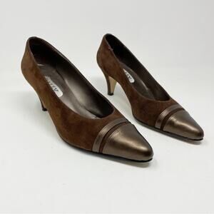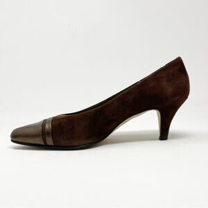 Bally of Switzerland Vintage Brown suede metallic leather mid heel pumps shoes 7