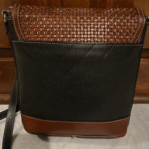 Bally vintage bag woven leather flap Italian leather Black & brown EUC