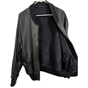 Bally 90's Italy Reversible Black Leather/Suede Bomber Jacket - Men's 38, Medium