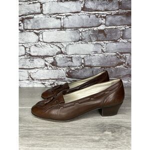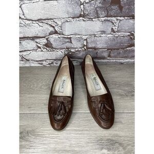 Bally Brown Leather Kiltie Tassel Loafers Kitten Heel Shoes Women’s 6.5M US/37EU