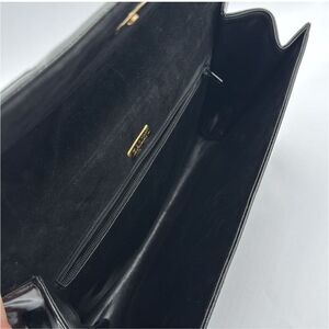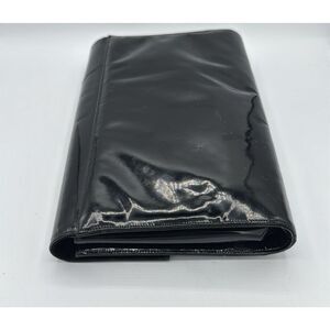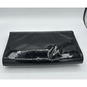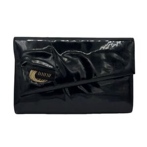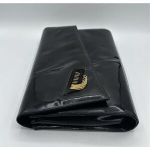 Bally Patent Leather Envelope Clutch Black Gold Accent Event Evening Cocktail