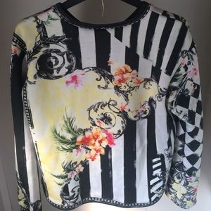 Exclusive Balmain White Black Floral Printed Techno Sweatshirt. Size 38. Loose Fit. Authentic/ will include invoice in package