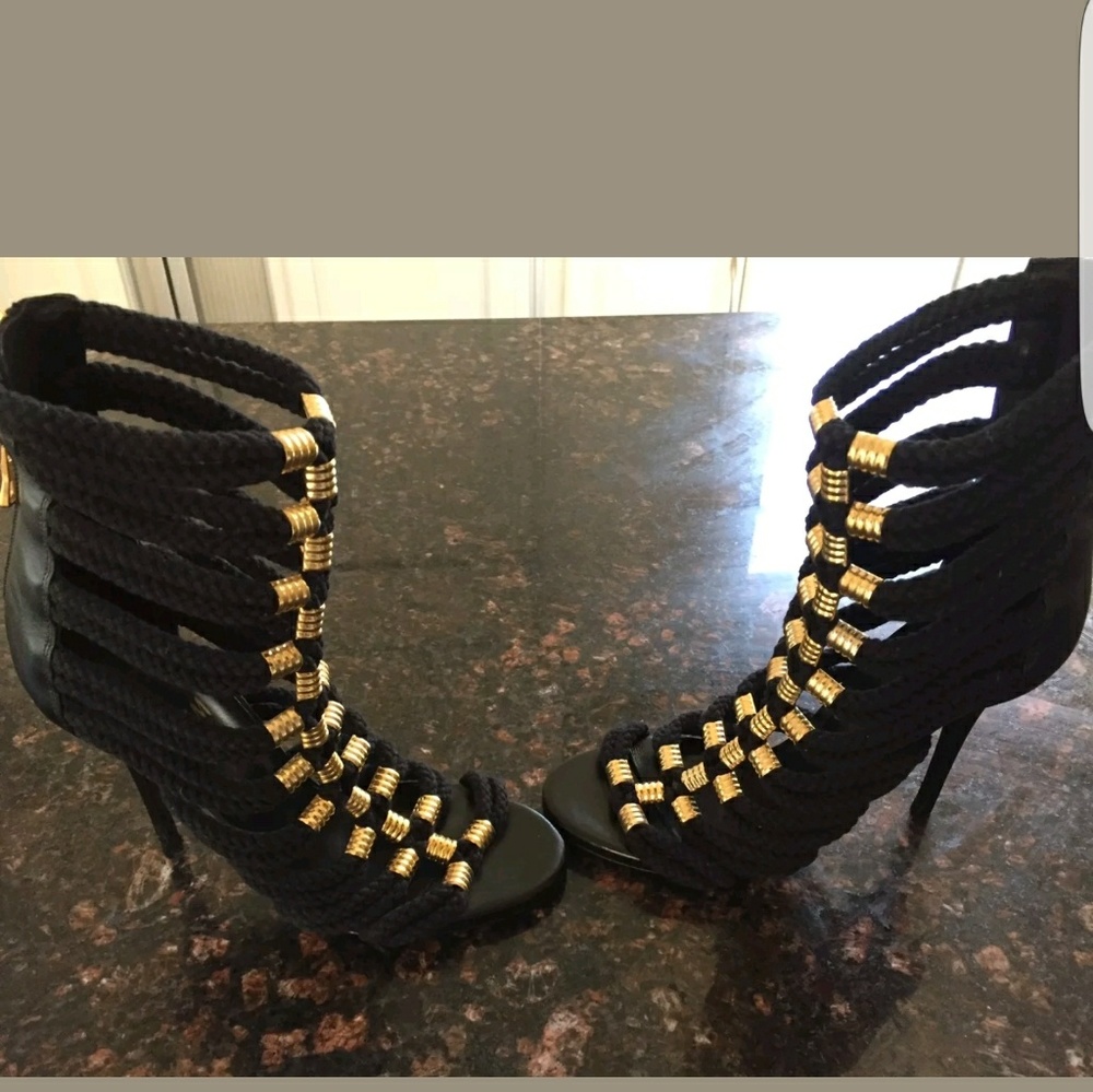 Black and gold rope sandal come with original box and duster bag