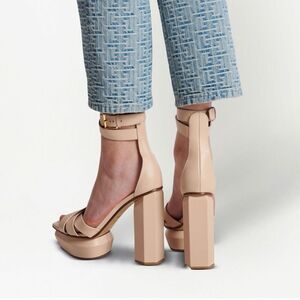 Balmain Ava Metallic Leather Platform Sandals size 39