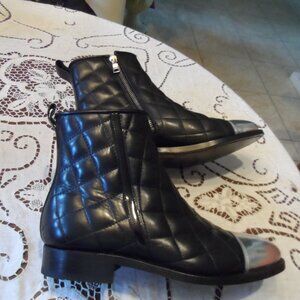 Balmain Black Calf Leather Quilted Ankle Boots w/Silver Cap Toe Size 39B