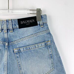 Balmain Blue Distressed Denim Fringed Shorts XS Limited Edition Premium Cotton C