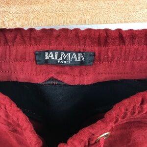 Balmain Boys Red Lamb Suede Moto Pants Size 8