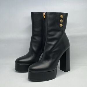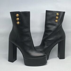 Balmain Brune Leather Platform Ankle Boots size 38