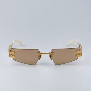 Balmain FIXE BPS-123D-54 Women BRAND NEW Sunglasses Titanium Gold Brown Geometri