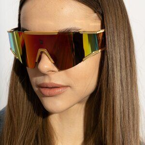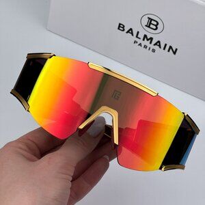 Balmain FLECHE BPS-138C-141 Men BRAND NEW Sunglasses Titanium Gold Red Brown Mirror Mask