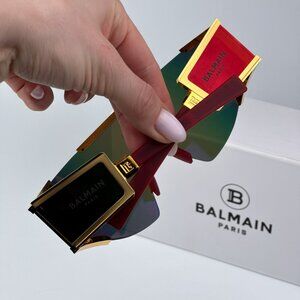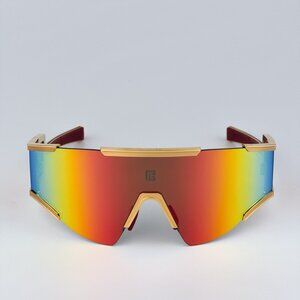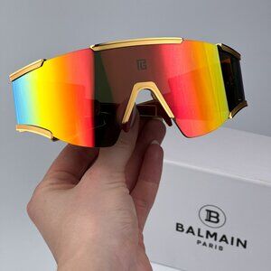 Balmain FLECHE BPS-138C-141 Men BRAND NEW Sunglasses Titanium Gold Red Brown Mirror Mask